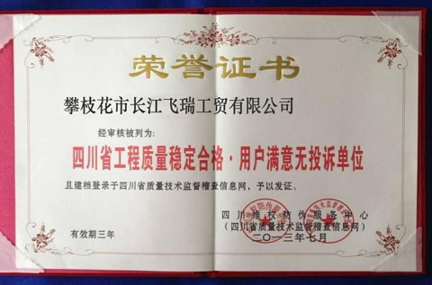 四川工程质量合格用户满意无投诉单位