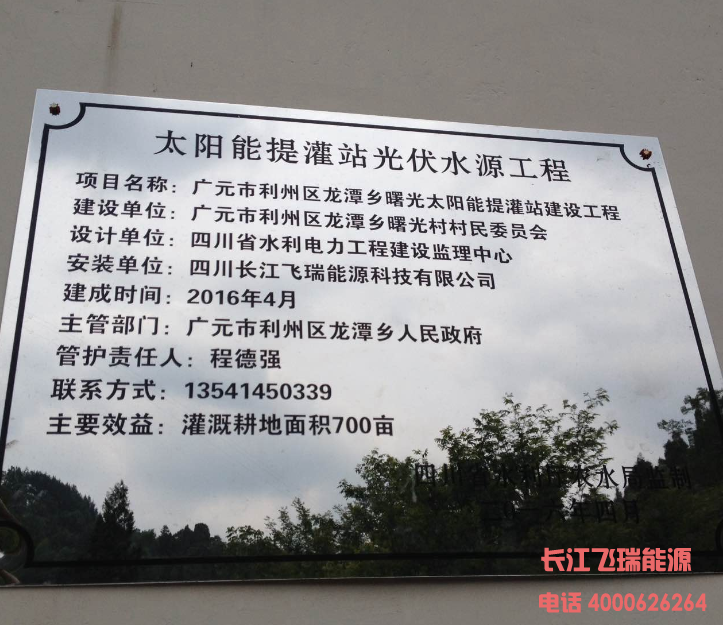 6月6日,利州区龙潭乡曙光村太阳能提灌站建成投入使用。据悉,该村原来是电力提灌站,现改造为光伏提灌,该太阳能提灌站扬程高达310米,流量40立方,为广元市流量最大的太阳能光伏提灌站。