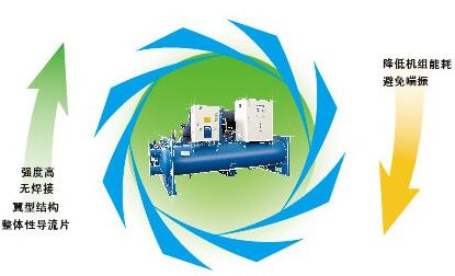 整体性导流片,无焊接或者铆接点,强度高,翼型结构,改善压缩机入口气流的流动形态,降低压缩机工作振动和噪声,更符合空气动力原理,配合变频驱动装置,降低机组能耗,避免喘振,可以实现10-100%自由能量调节。