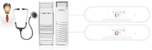 当空调机在运转过程中出现故障时,可通过控制系统对空调器进行故障自检,将检验的结果转化为相应的故障代码,显示在控制面板上,然后通过说明书中的故障代码对照表,便可很容易的找到故障的原因,将其排除。