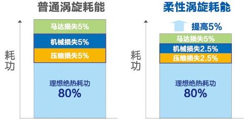 压缩机效率提供5%,所有压缩机均使用柔性涡旋全直流变频压缩机,实现了压缩机的全变频化,效率相比普通压缩机可提升5%。