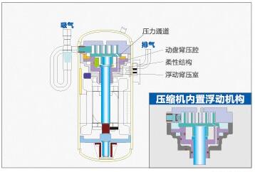 柔性涡旋盘结构设计,在压缩机负荷出现异常变化时,有效免液压缩机,提升压缩机的可靠性。 压缩机内置浮动机构,在内部压力异常上升时,自动将动涡旋和静涡旋分离泄压,避免损坏涡旋盘。