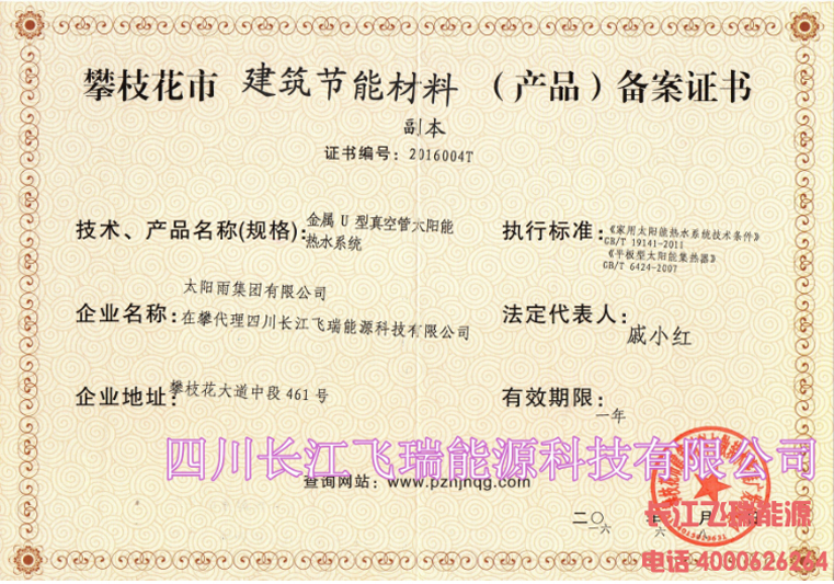 攀枝花建筑节能材料(产品)备案证书 (3)
